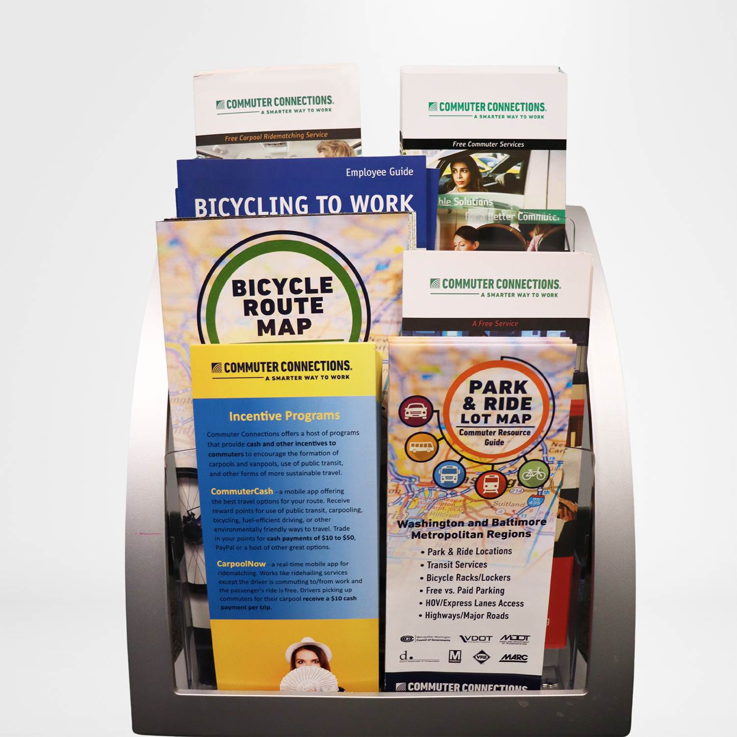 An array of literature items are available to employers and outreach organizations who may wish to provide Commuter Connections program information to employees, residents, customers, etc.
