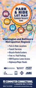 The Park & Ride Lot Map and resource guide is a directory of the over 300 Park & Ride lots available across the Greater Washington, DC region. The map helps commuters learn about their commuting options by helping them to locate Park & Ride lots nearest to their homes.